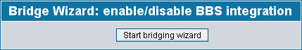 Note: with each step in the wizard, some information is being written to the coppermine database. Unlike other wizards (mostly on your local machine), the bridge manager doesn't have a "cancel" button! Once you have enabled bridging and everything is working fine, you shouldn't change any values just out of curiosity, as they will get written to the database, which might result in a bridging that used to work not working any more after "playing" with it.